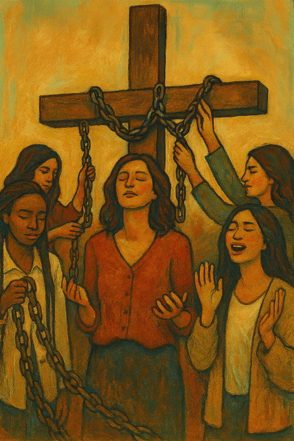 One by one, women approached at their terms, when they were ready to place their burdens, their chains on the cross. The cross wasn't glorious, it wasn't huge. It was simple, it was stable.